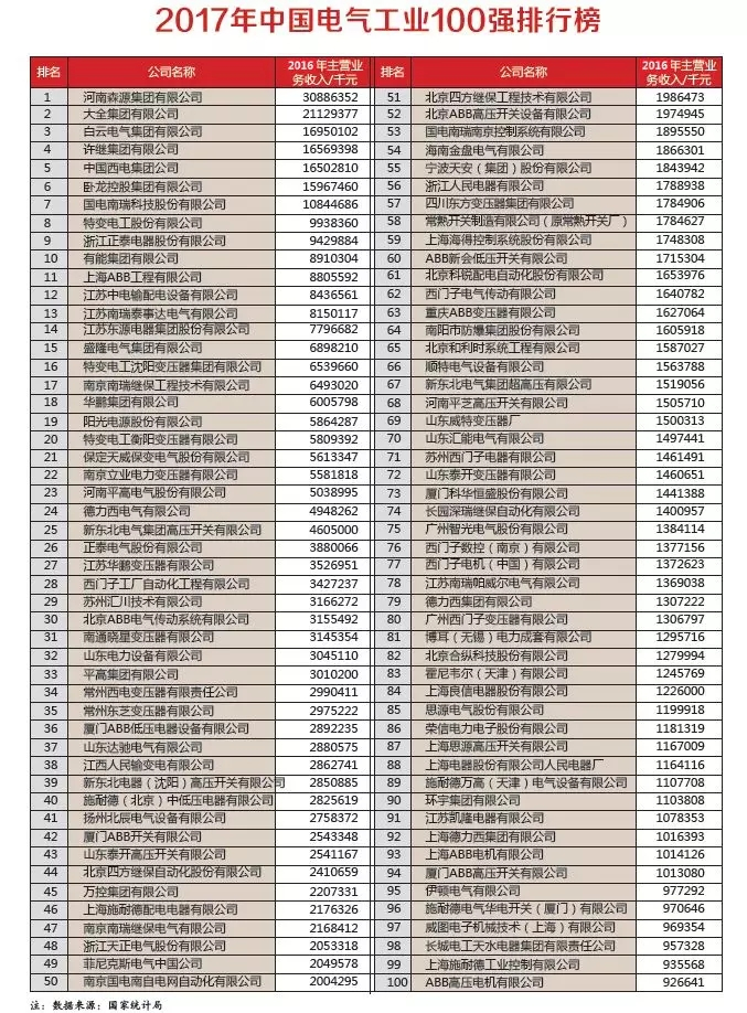 2018第18届中国电气工业100强榜单发布
