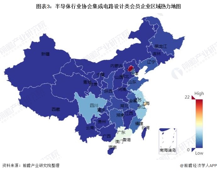 2、中国芯片设计企业数量增长迅速,主要分布在北京、上海、广东